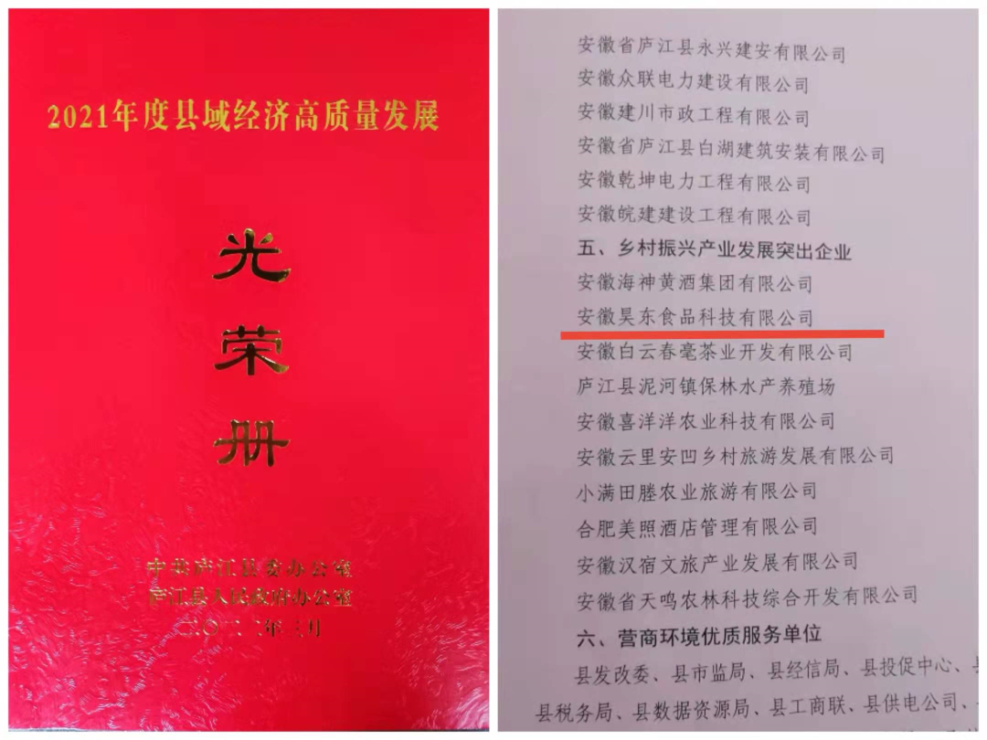 展望2022年,昊東食品將逐步擴大生產規(guī)模,不斷加大研發(fā)費用投入,盡最大努力,爭取為廬江的發(fā)展助力,以回饋這幾年來縣委縣政府各部門及臺創(chuàng)園管委會的關心幫助!安徽昊東食品科技有限公司始終秉持“堅定信心、提振精神、真抓實干”的理念,獲得“2021年度鄉(xiāng)村振興產業(yè)發(fā)展突出企業(yè)”榮譽。